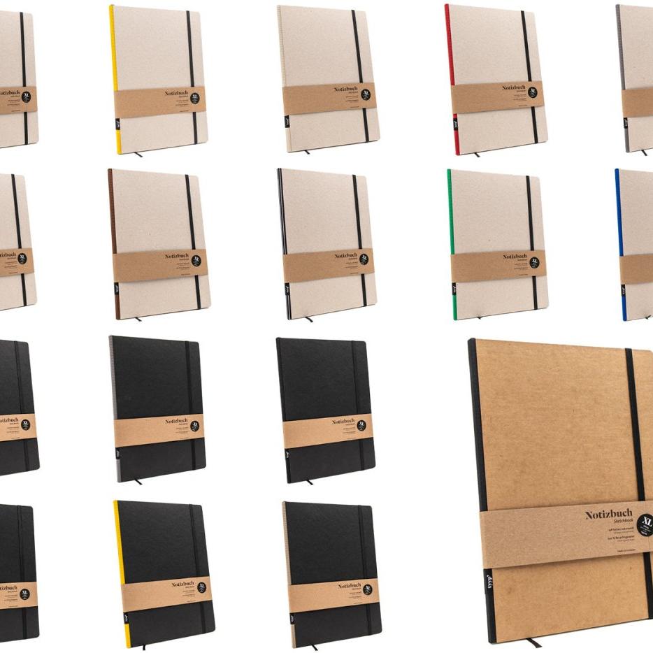 Das Buchcover des nachhaltigen Notizbuch A4 besteht aus 100% Recyclingkarton in verschiedenen Farben. Auch die passende Bundfarbe aus italienischem Stoff kannst du dir selbst aussuchen. Kurzum: Design dir dein cooles Notizbuch A4 so, wie es dir am besten gefällt!