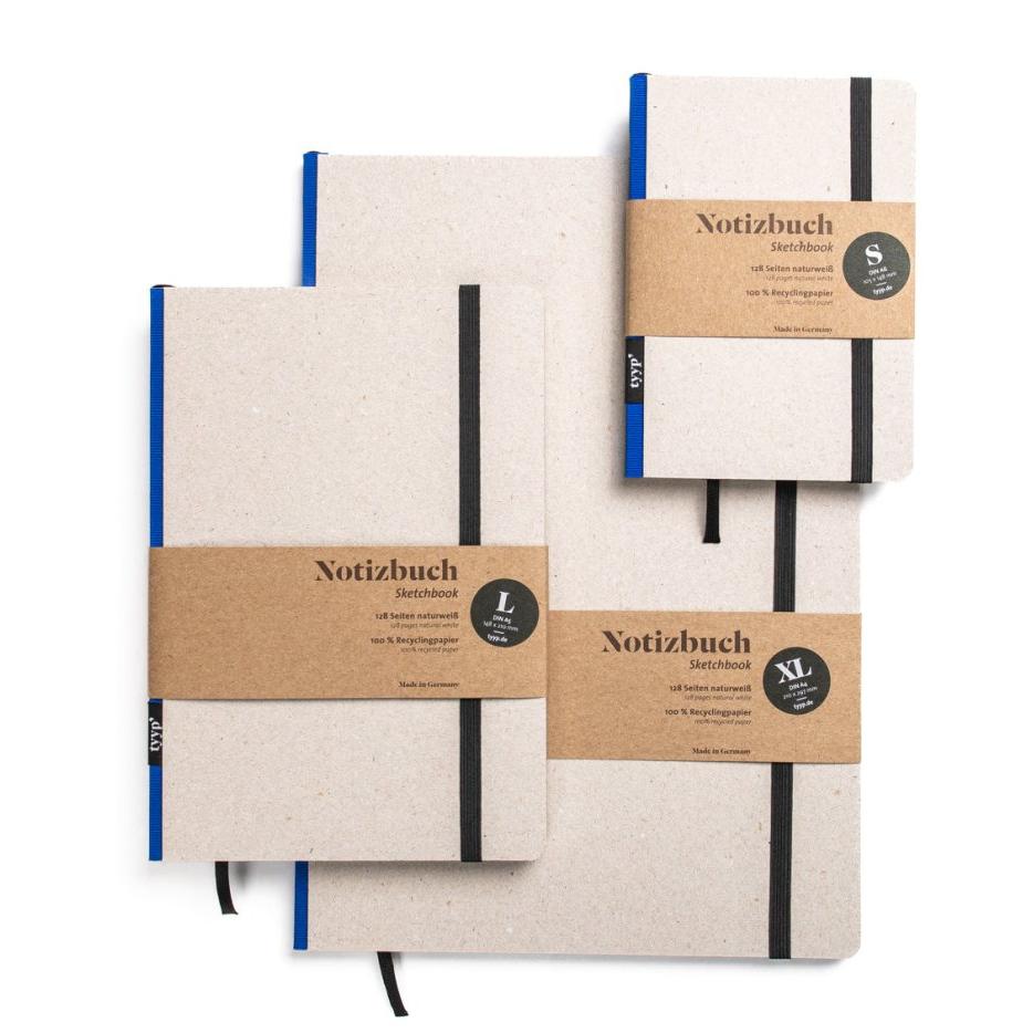 in Handarbeit produziert. Das Notizbuch A4 besteht aus hochwertigem Recyclingpapier. Dank des stabilen Buchcovers aus 100 % Recyclingkarton verliert dein nachhaltiges Notizbuch auch bei längerer Benutzung nicht an Stabilität. Das Öko Recyclingpapier deines Notizbuch A4 trägt das Umweltzeichen „Blauer Engel“. Der Recyclingkarton ist entweder mit dem Siegel „Blauer Engel“, „PEFC“ oder „FSC Recycelt“ zertifiziert. Alle tyyp Notizbücher sind vegan.