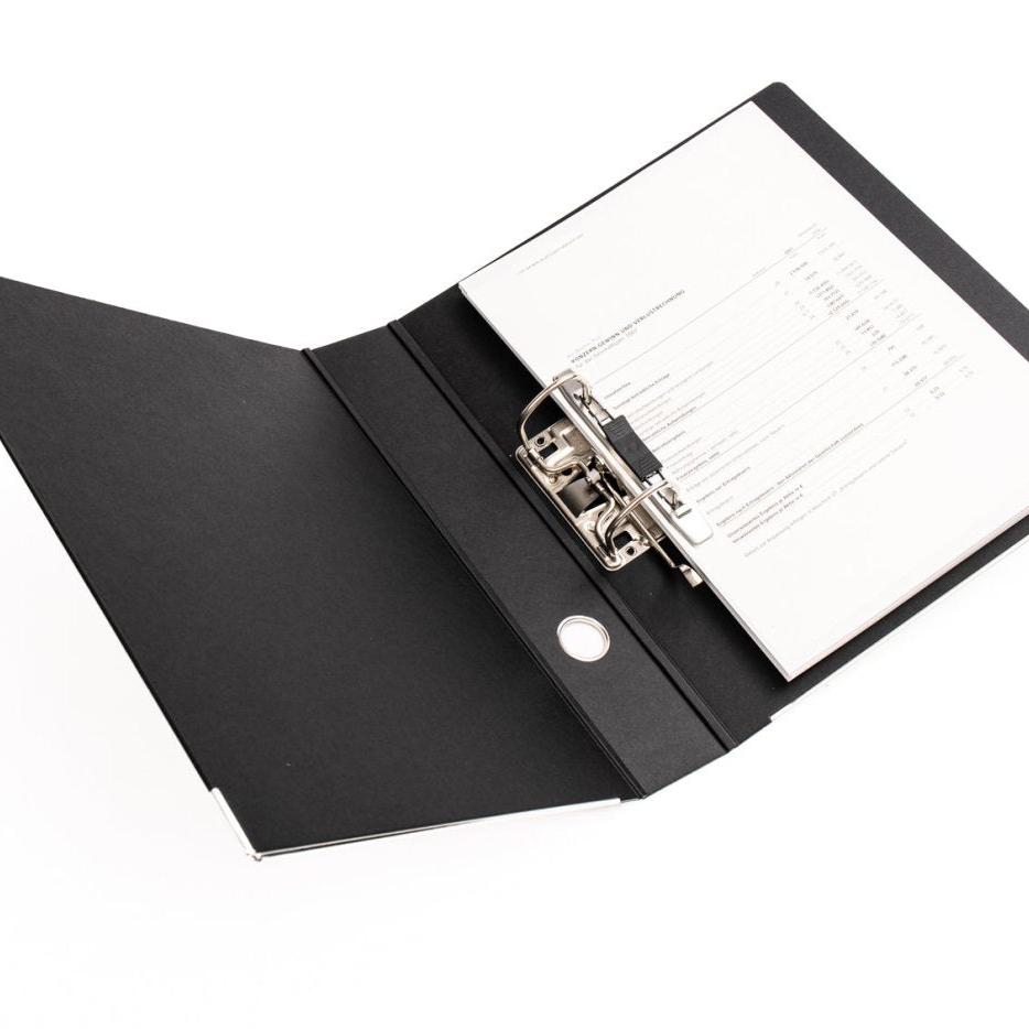 Ordner: » Größe: für DIN A4 (290 x 317 mm, 62mm Rückenbreite)» Bis zu 350 Blatt » Metallkantenschutz (nicht beim Kontoauszugsordner)» Auto. Mechanik mit Blattniederhalter » Farbe: Schwarz» Geöstes Griffloch» Recyclingkarton Blauer Engel zertifiziert