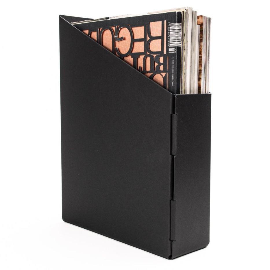 Stehsammler in Schwarz, Craft oder Recyclingkarton mit Griffloch. Erhältlich für Dokumente im DIN A4 Format.
