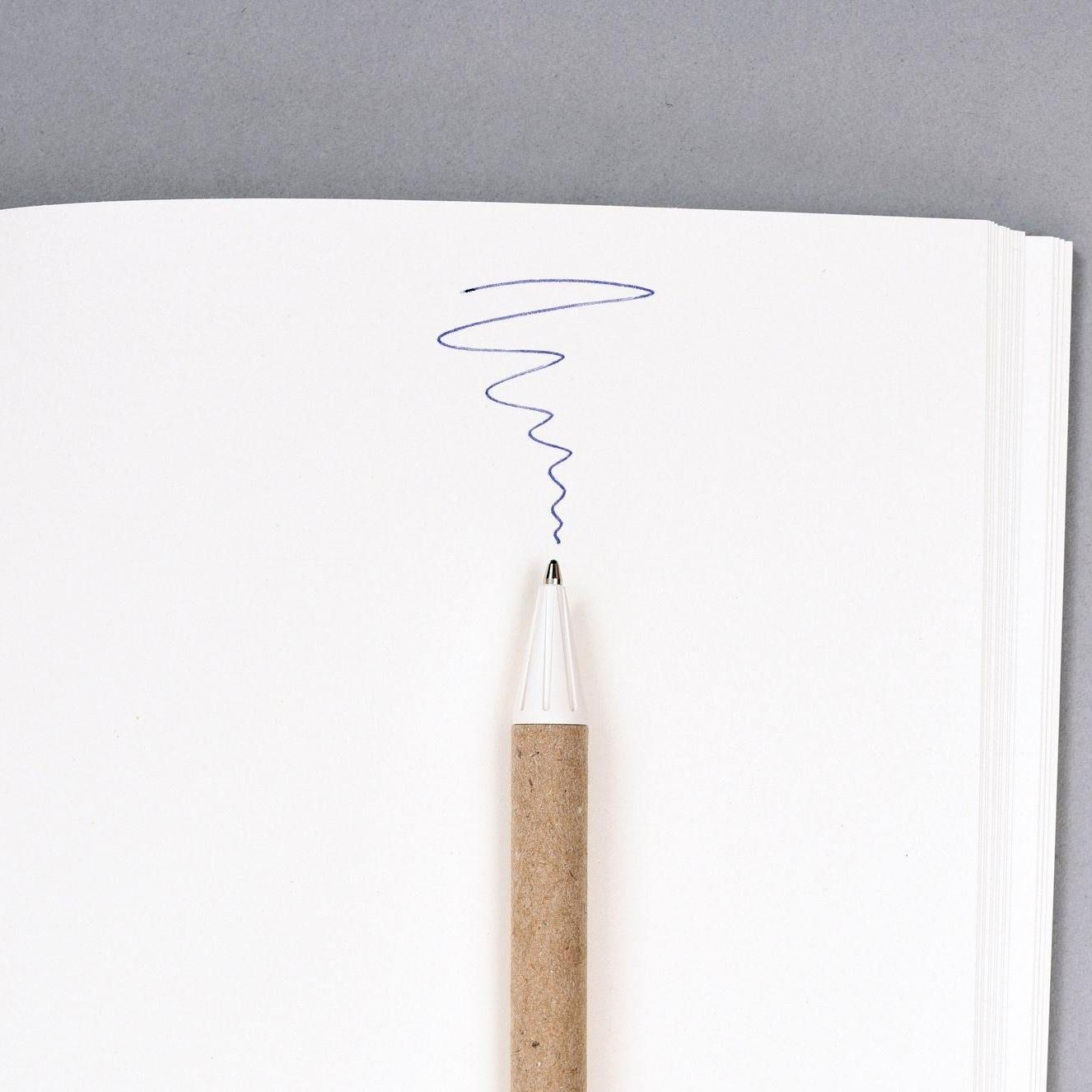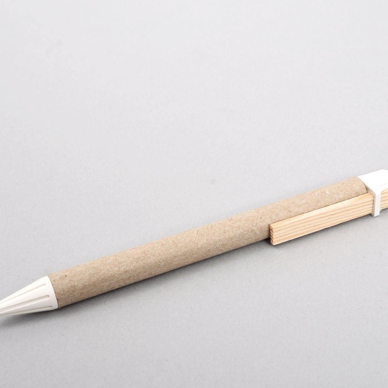 Blauschreibender Umwelt-Kugelschreiber aus biologisch abbaubarem Material. Nicht nur Drucker und Spitze setzen sich aus natürlichen Erzeugnissen zusammen, auch der Schaft besteht aus recyceltem Papier sowie der Klipp aus reinem Holz.